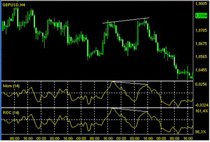 Pic.6 Registration MOM and ROC are very similar, the possibility of the direction change is determined after the upper borders of the interval are reached. Divergence became a strong signal for confirmation of the trend change.